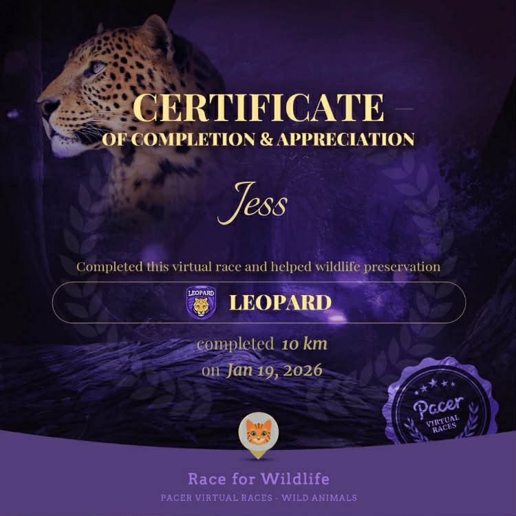 I did the 10K Leopard challenge by Pacer. For this challenge, the 10K had to be completed in one workout. My partner did the 10K Tiger challenge. We set out on January 19th and managed to walk 11km!